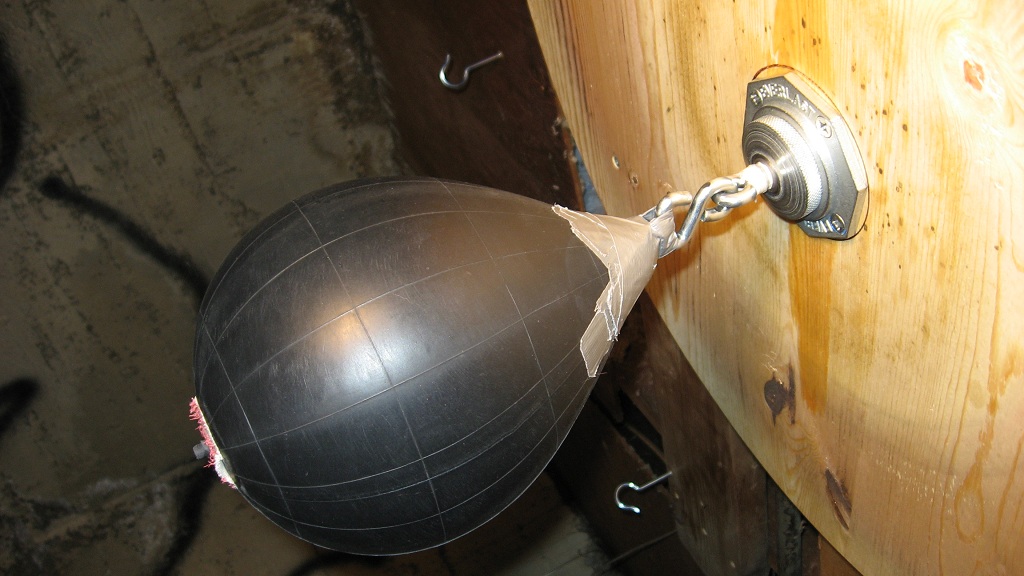 What I did was screw an "eye" hook into the rafter of my garage ceiling, then I got a small bin, filled it with sand and screwed the floor mounting bracket into the top. Once I'm done with my workout, I simply unhook it and drape it over my chinup bar, so it's out of the way. I did this as I don't have any weights and the DEB floor stabalizer that Everlast makes is not the best.