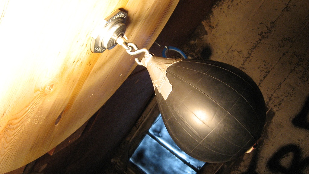 I "borrowed" one of my 4 year old daughter's toy bouncy balls for the bag itself. (i think she still wants the ball back, even though i've got her several to replace it since then) HaHa. I then wrapped the ball in a fine net. Tied Loops at both ends of the net. Then i covered it all with DUCT TAPE. gotta love duct tape.