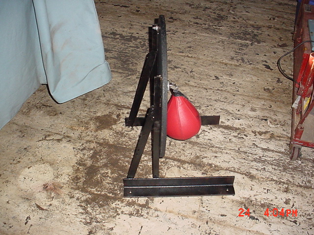 Well I got that platform on E Bay about a week ago and it didn't have brackets so I had some scrap angle iron and welded a set of brackets up today. It is much stronger than the title brackets and I'll set it up at my disabled friends house that I help out a few days a week so I can hit the bag there also. I want to wach out for materials this spring and build a adjustable platform for my home gym.