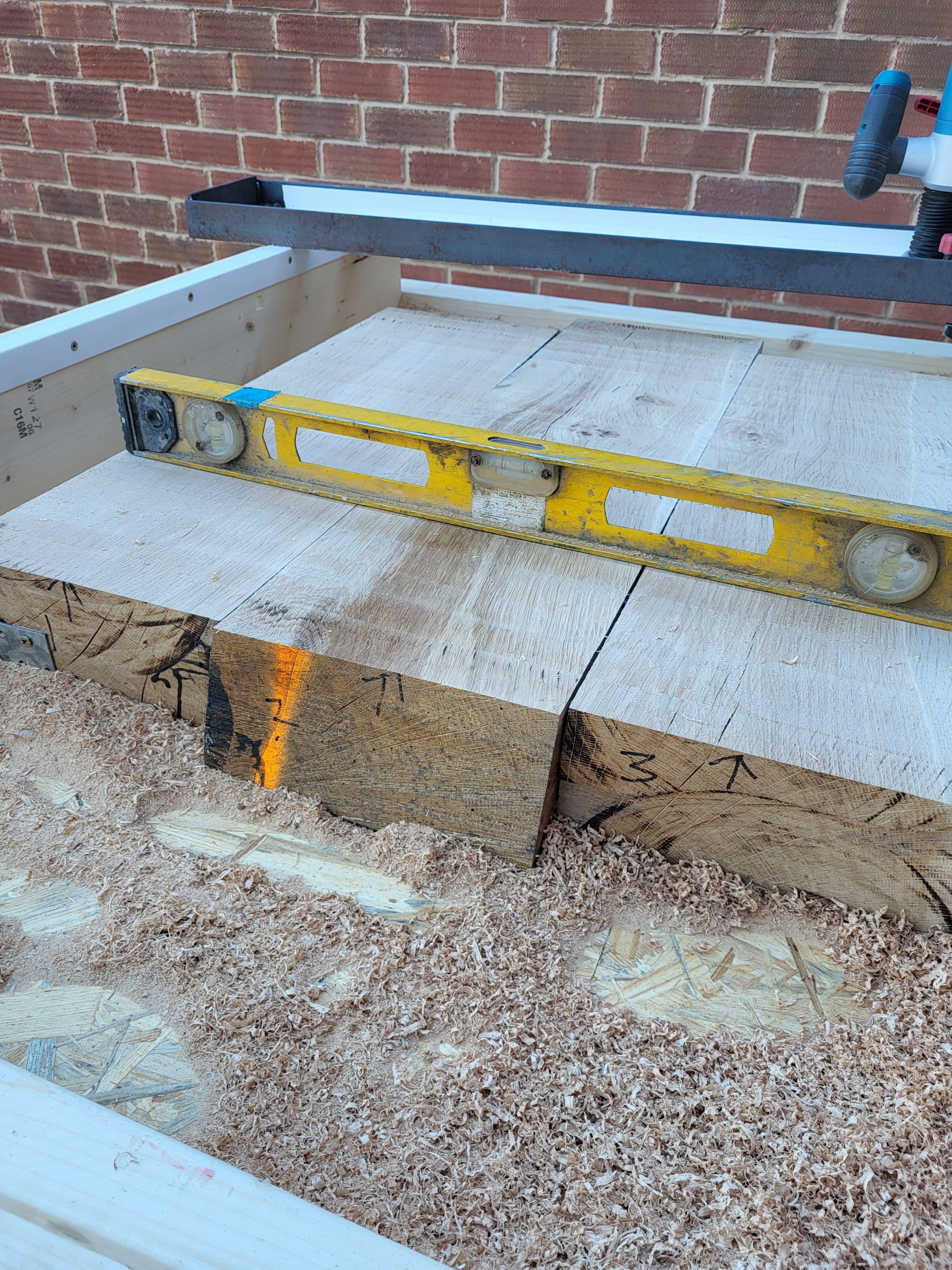 Finally flattened the oak beam bonded slab to use as a quality drum for my adjustable platform that's almost complete too