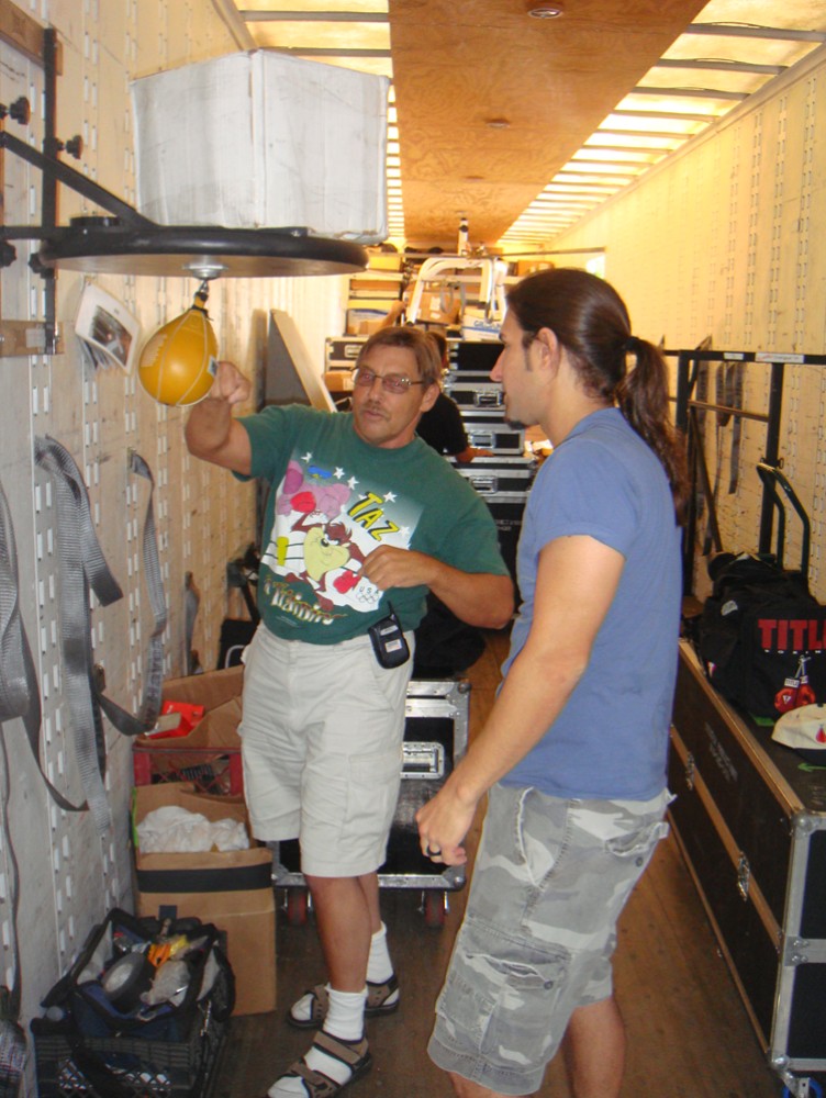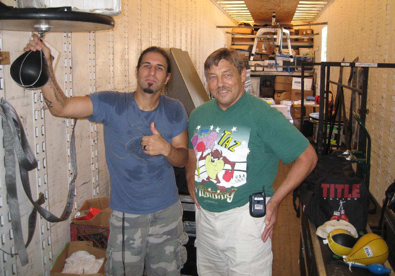 I'm glad you guys got together. Like I said, you have to experience Skunk's punching "live" to understand how fast he is. Video does not do his baggin' justice. He's throwing some insane combinations at warp speed. I Hope you, Tim and Skunk got some great pictures. I'm Sorry they didn't get to be "in the speed bag truck", so they could sign the board. But the tour isn't over yet. Anyway, next to hanging inside the truck is being seen "in the cage" at Tim's place. That's starting to be Hallowed ground also!