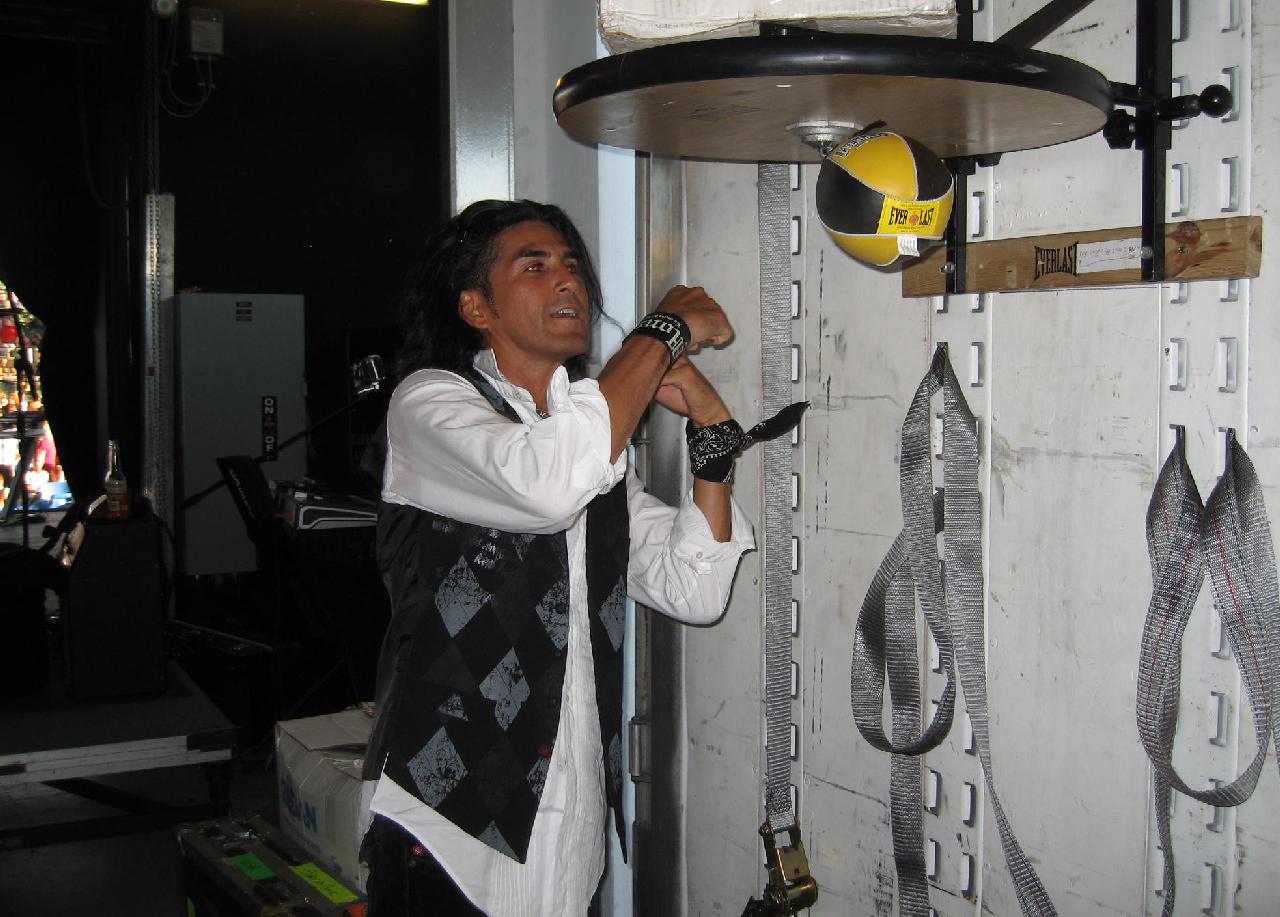 AK... your words of encouragement mean a lot. They really do. You and I have a lot in common as far as punch drumming. You are far ahead of me although I know that I can put some stuff together. I was with Tim and the skunk all day today and it was a blast. Skunk is insane like you said. He is a joy to watch. There is no one like him. I didn't even bother with punch drummin.... We were at Tim's house and the speed bag truck was gone.. going to oregon for our next show... I did not know.... we stayed at Tim's..that was great.... Skunk was on the stage filming my solo and all was fun! He will be making a crazy video...... I can't tell y'all how much he owns the bag.... it is stupid.... but AK... he, as well as all of us give you total props for the bible and your amazing punch drum technique!!! IT is nothign short of an honor to have you say anything positive about my baggin.. as I have a real long way to go!!!
