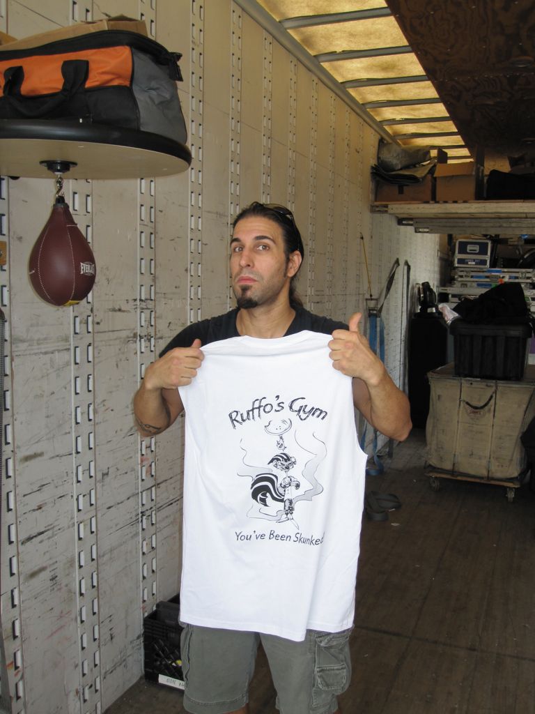 Check out this picture of Tim. Look closely. What seems strange? Maybe it's Skunk's foot in a mid-air bag kick!! Haha!