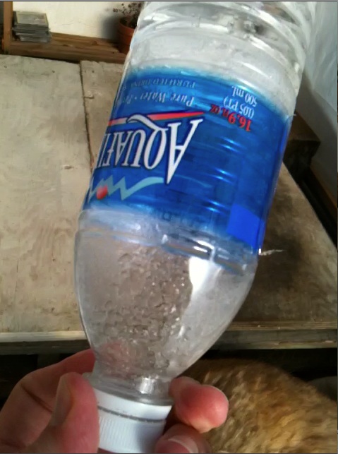 I'm so addicted. It's been sub-freezing temperatures here for the past several days and I've been having speedbagging withdrawals! I finally ventured out to the garage yesterday and managed to do a 1-hour workout... but only because the sun was shining in my corner of the driveway. Here's a photo of my frozen water bottle.