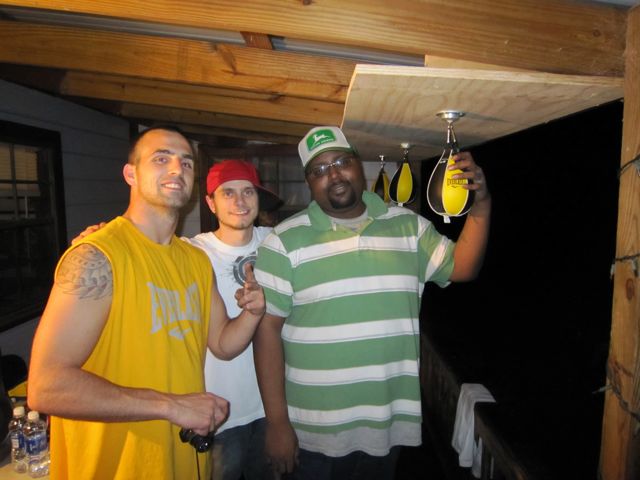 In case you all did'nt know. This weekend was a GREAT one. Went and seen FORIEGNER at Silver Springs which is about an hour from my house. And after the Show we did a little bit of baggin on the truck but we all have been there. So Tim, Carol and Brian wanted to go to the DEEP ROOTS of the Skunk. So we all took a ride back to lake city. Where Us baggers got to gether to have some Road House to fill our bellys with some FOOOOD. BTW thats after tim had to try and keep up with the SKUNK and his AWESOME DRIVING MANUVERS (tim will disagree but dont listen to him im a good driver i swear) lol After a full meal we all decided to hit up a HOME depo. We got 2 2x4's,a peice of plywood, and some screws. to make a 6 man speedbag platform on the front porch. So heres the first pic and the video will be here soon.