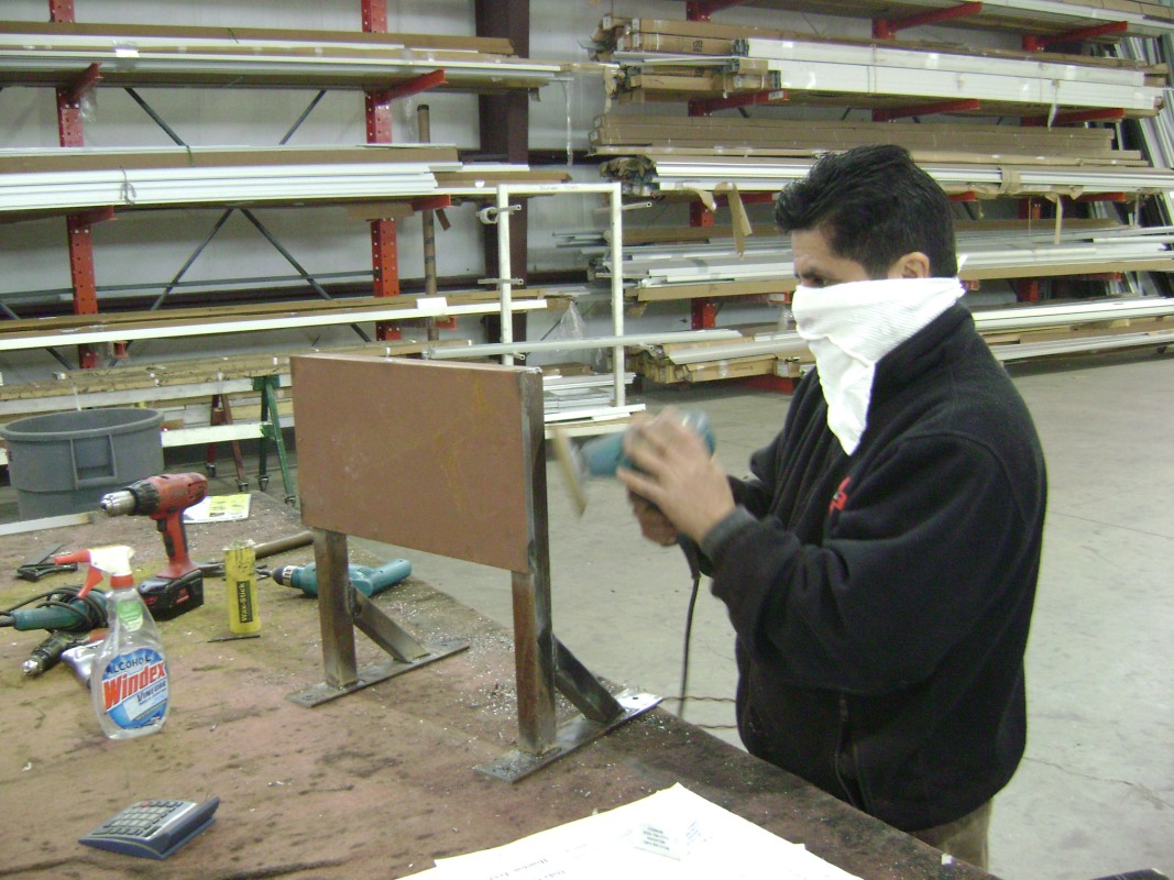 I should also add that my family owns a commercial window framing company (www.dukeglass.com) , and one of the guys "needed something to do." You'll see him sanding the edges in one of the pics.