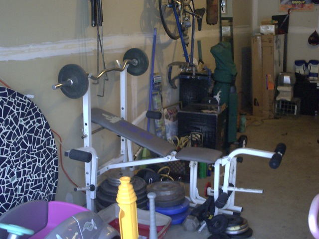 I haven't been much for weights lately, but I got the bench for $2.00 at a garage sale. Even Nina(my wife) was gonna kick my crapper if I let it slip by!