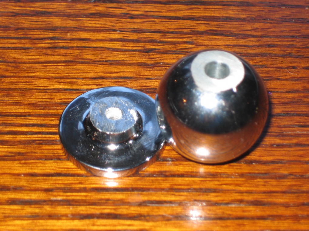 Well i took my daughter shopping today to a local warehouse outlet which sells nearly everything from dog food to power tools well this caught my eye 25mm chromed steel door-knobs 2for £5! to cut a long story short i cut the base off and drilled and tapped it and i am now the proud owner of the first Door-knob Ball-hook swivel