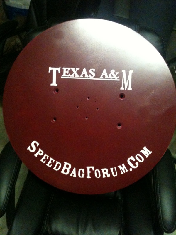 I painted a Balazs board white, let it dry, then applied an A&M decal, and some alphabet stickers. Then, I painted the whole thing maroon. After that dried, I peeled off the decals to reveal the white paint underneath. Then I sprayed a clear coat over it all, hopefully to prevent it from wearing down.