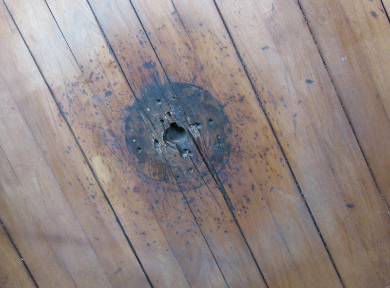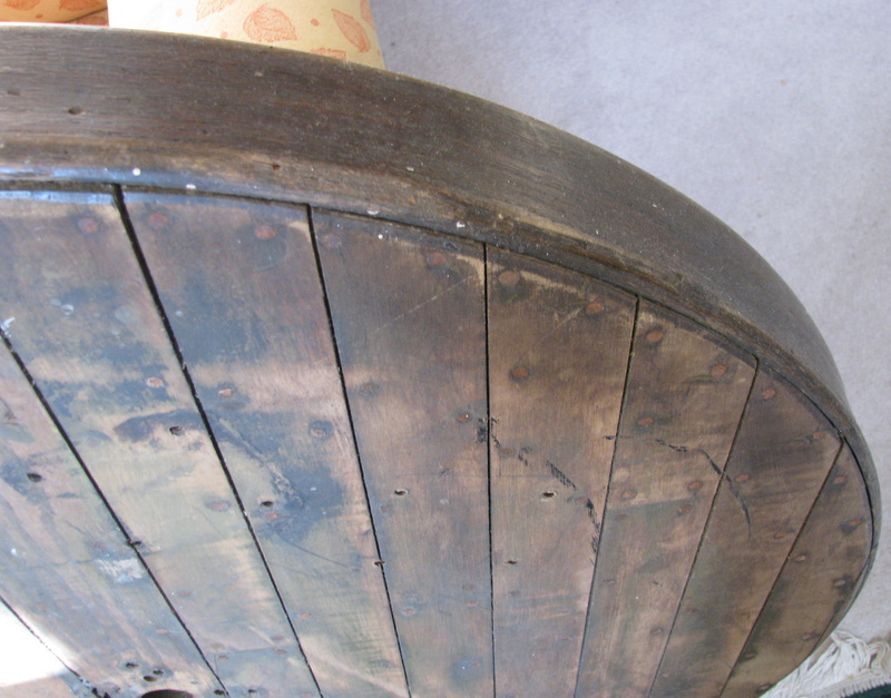 Here are pics of the drum. Original. I did not refinish the wooden drum at all, it has a beautiful patina on it. 110 pounds (!), 36" diameter and 3 1/2 inches thick. beautiful old hardwoods. going to attach. Looks worn but works just fine.