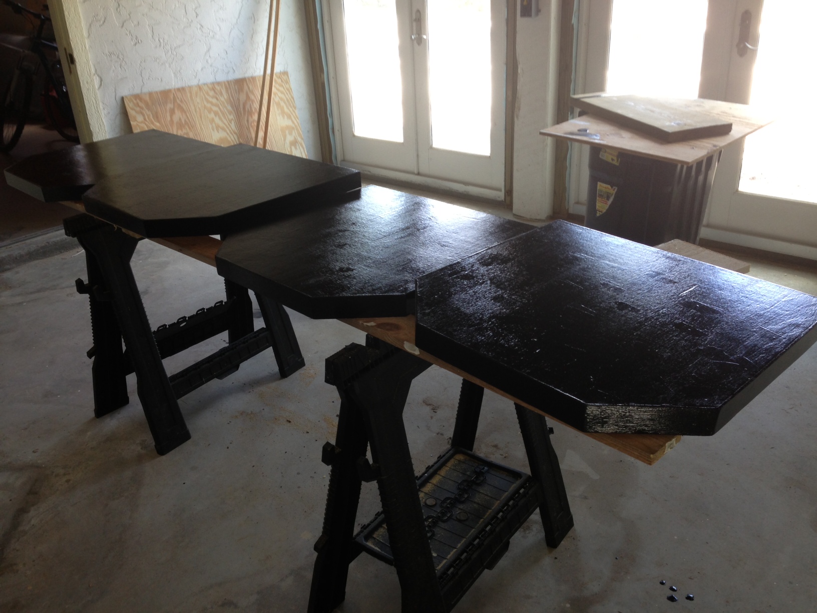 Hello. Today we did a little factory work and made up 4 platforms. Three for the YMCA and one for a couple in their 70's Went for a more geometric pattern to make things easier and a cleaner look. 2 1/4 thick with a skirt to cover the end grain. Finished product will be painted gloss black.