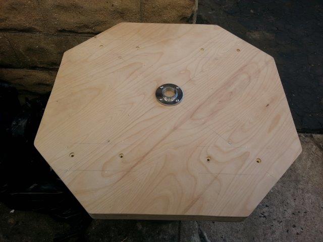 here are the pictures of my custom plat form, for my first attempt I think I have built a very solid unit, it is 30"x 28" 2" thick (28" Drum space). any Questions, thoughts and comment's are welcome, I will post a video of it in action soon but keep in mind I am new to Speed Bagging only 9 weeks. It's not going to look or hear anything like some of the Video's I've seen here, time and practice I guess