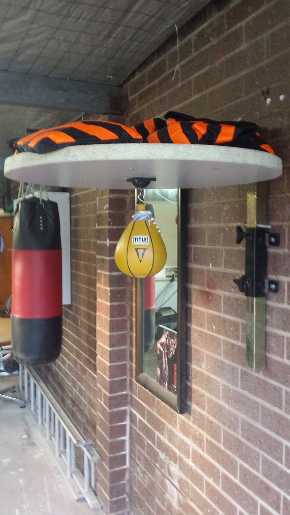 Good job Stefoz. I'd like to do that but if I cut my kitchen table up and hung my speed bag from it my wife would kill me. Although with an adjustable mechanism like that I could argue that we can still eat food on the top of it- if I got some real tall bar stools. lol.