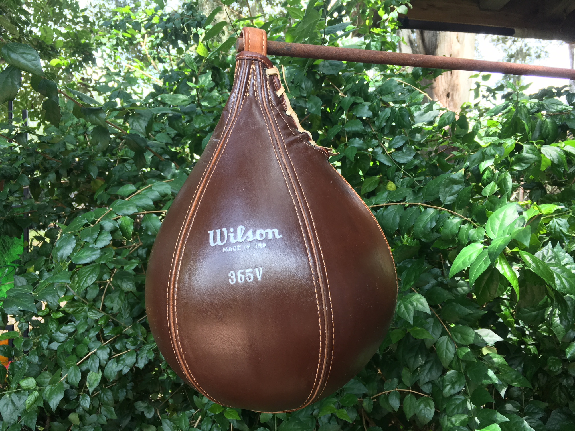 Here is my latest addition to my vintage speedbag collection. Still in the box, never mounted or hit on. I have an acquaintance in Michigan that attends major estate sales in Michigan. This is my second buy from her in the past year. The original bladder is still good. 15 inches long, laces still tight and good, came with a Nicols swivel, an air pump needle (supplied with the bag when it came to market). I probably will not hit on this one.