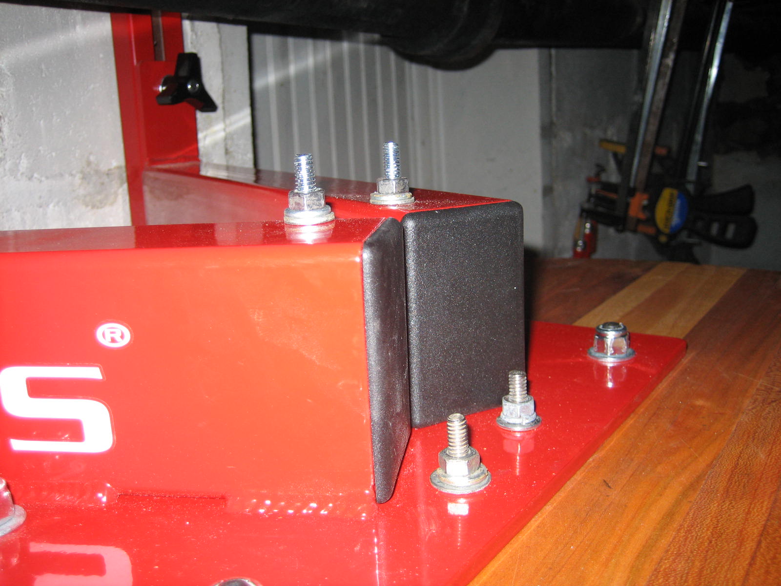 The only other modification that I did was to drill all the way through the frame so I could install bolts all the way through the board to eliminate the provided swivel screws from loosening up or coming out. I only had to drill through the bottom plate for the front bolts, but the back ones required 6 inch carriage bolts and I had to drill through the plate and the box beams to go all the way through.