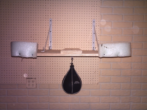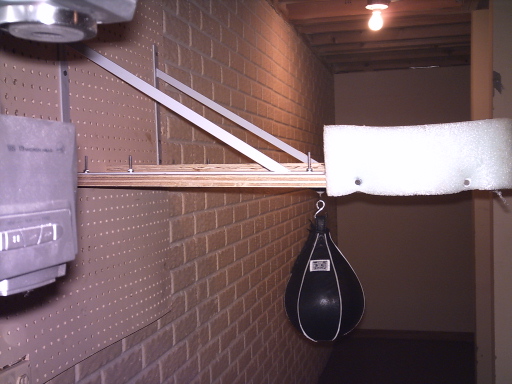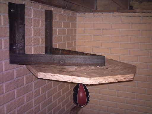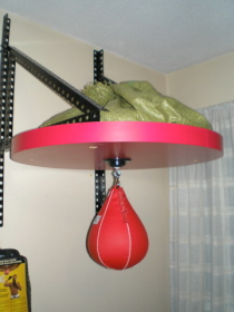 I finaly got some time so I built my self a platform for my room. And let me tell you guys it is GREAT! The board is a 1 inch pine round and a 1 inch oak table top. The frame is just a box made from 1 1/2" square tube so simple it hurts. There is no sand on it right now and it dosent vibrate at all! even with that huge bag.