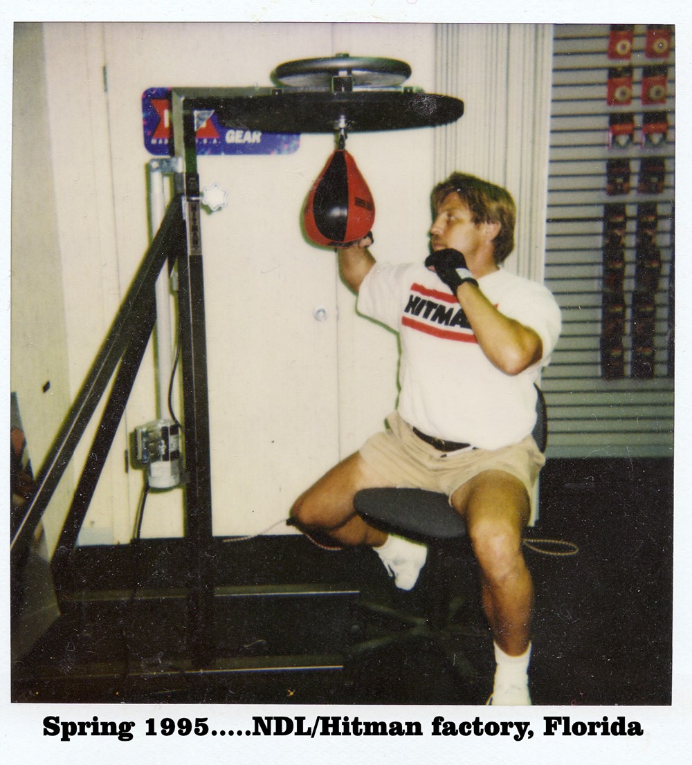Ahhh, that hitman bag brings back many memories. "Hitman Boxing" was a branch of NDL Products. They were the first to show any interest in a "speed bag training program" I was developing and brought me to their factory in Florida where they made all of the various products. My first meeting with a "Hitman Bag", similiar to the one shown in the craigslist picture, is shown below:Originally posted by paranday View PostI have no idea about this ball hook, but the price is low,