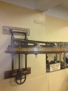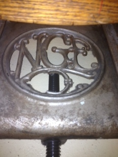 The emblem is NGE, (Narrengansett Gymnasium Equipment), instead of NMC (Narrengansett Machine Co.) places it later on in the company's life, before it's assets were sold off in 1948. I have some doubts about the platform itself being original as it is partially plywood. Collectible, yes, but IMHO it's not worth the five bills that is being asked for it. Half that is more realistic.