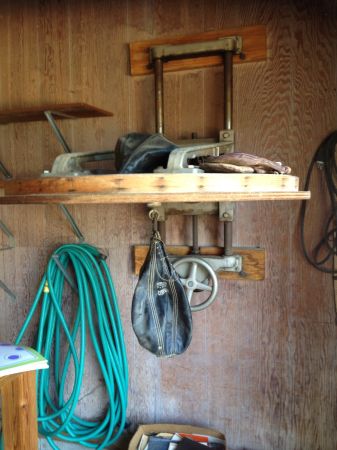 Here are some pics. Unfortunately we pulled the seconf one out of storage and the support arms that hold the wooden platform to the frame are missing. There is also a little water damage to the wood on the platform. The first one, however, is in working condition, and as you can see is still being used in our weight room. We are doing some renovations to the space. Moving the platform to the new space is not going to work, so we are going with a modern speedbag platform.