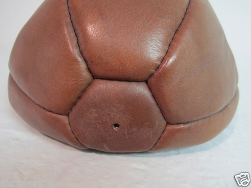 I think I know what this is. Do you remember the retro bag set that was being sold by a British company? Mrs. Mitts came across it. It consisted of a new old school heavy bag, a large striking bag and a pair of gloves. I believe this is one of those striking bags. The stitching is wrong for an old bag, plus the valve is in the bottom, which is something that didn't start to happen until the late 1930's at the earliest.