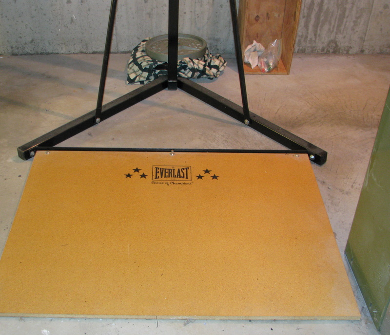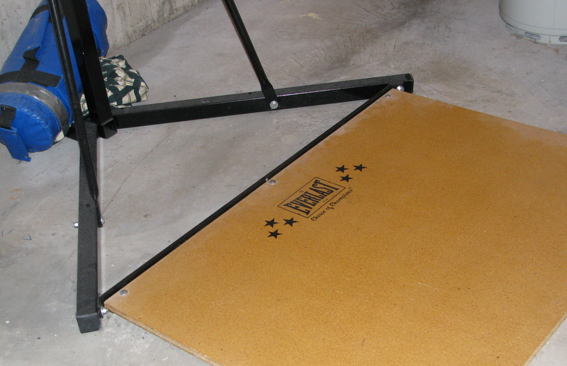 The large wooden " Everlast " piece is attached and part of the unit- when you hit the bag, you stand on the wooden platform, making it very steady.
