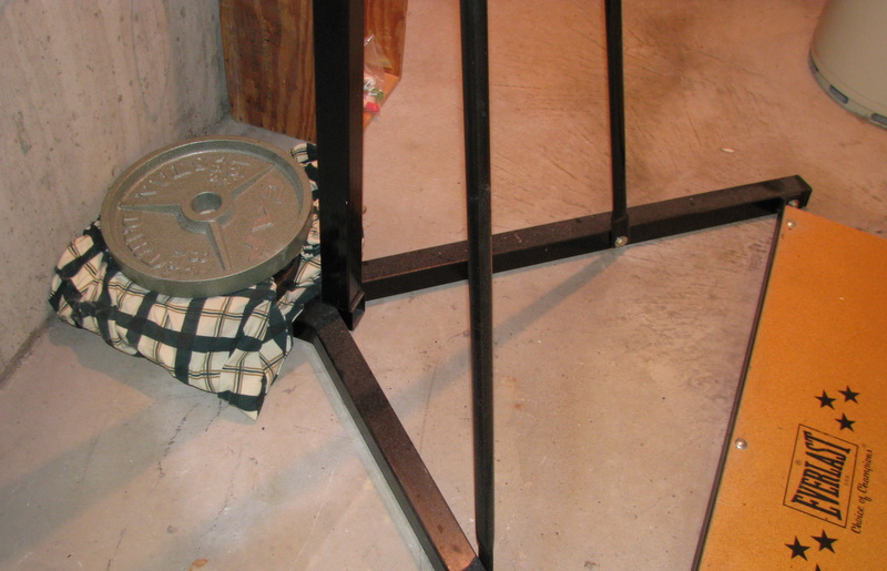 This unit is freestanding and made from square tubing. The gentlemen that I bought it from welded a 1/2" thick steel plate to the unit and it is bolted to and is the same size as the circular platform. The pics show the unit in working order as it was in my old condo. It is now disassembled. I also had a couple of sandbags sitting on top of the platform and on the rear, as you can see.
