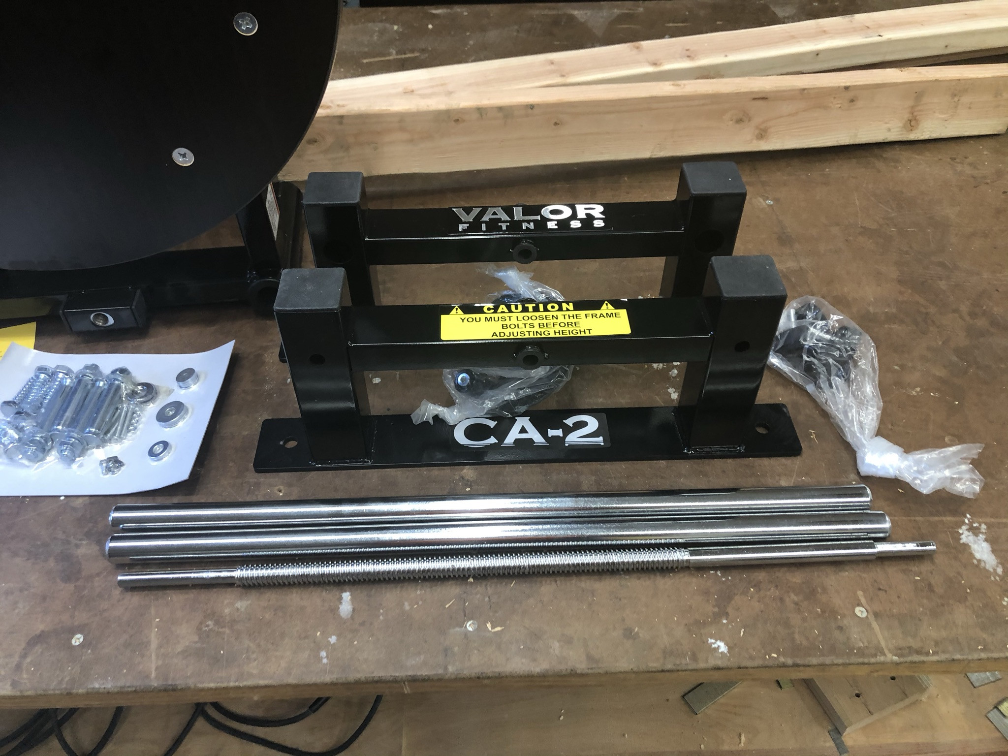 They shipped quickly via UPS and I had the CA-2 in about a week. The box arrived in good shape and the parts were well packed. BTW the box was heavy weighing in at 70 lbs. I made a 3" fir lumber frame to mount to 2" x 6" studded walls covered with 1/2" Sheetrock. VF included great mounting hardware for wood and concrete construction. I added an 1-1/2” thick laminated drum to the included 1” drum. I had to re drill the board for my swivel mounts and needed longer bolts to attach the boards to the frame. The included instruction were Okay, but could use a picture showing where the handle bearings mount--I've included one at the end showing the proper placement. There was a yellow sheet with a phone number to call if you had assembly questions that didn't work.