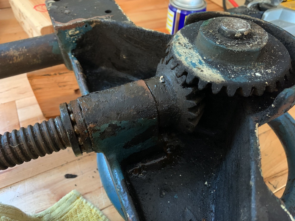 There is a little play in the wheel and the cone shaped sprocket, but no other movement in the screw shaft or the bearings. I tried Kroil, no luck. I tried to move the screw shaft with a pipe wrench wrapped in leather, nothing.
