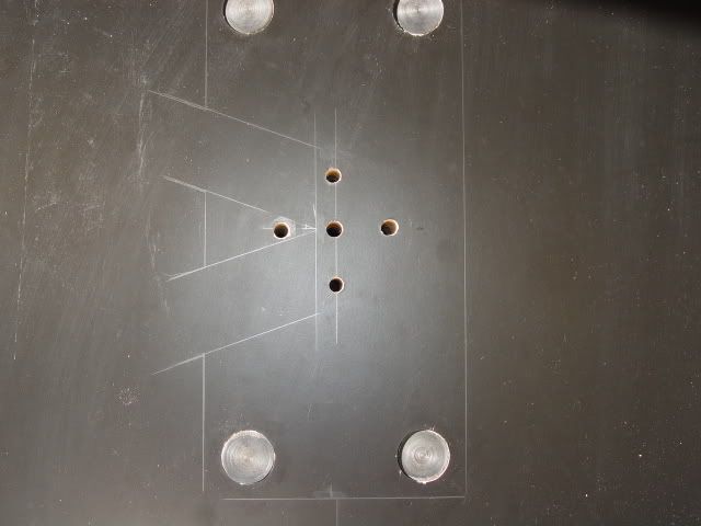 I started today on drilling holes, I couldn't drill a straight hole if my life depended on it! Hope these pictures give you an idea of what I'm trying to do. The bottom hole in the "V" maybe a problem installing a nut I might have to go from bottom with an allen head screw (smaller round head). I will probabaly install tomorrow after paint dries, and new pictures.