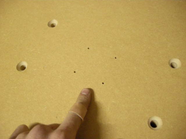 Balazs has the 4 small holes drilled where the swivel would be attached, but these holes are very small, intended for small wood screws.