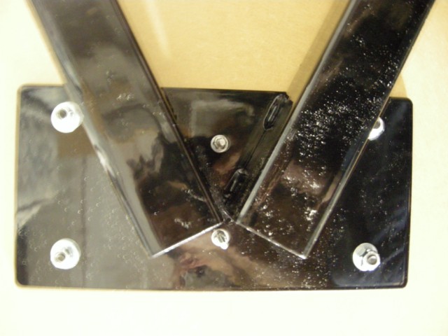 Go ahead and drill the 4 new holes with 1/4" drill bit (a pilot hole helps with accuracy). Then, place the drum on the steel platform frame, and snug up the bolts just enough to hold the drum in place. Run the drill bit through the 1/4" holes in the drum, but just enough to leave a small mark on the steel. Remove the drum and go ahead and drill these marks on the steel with a 1/4" bit. 2 of the holes will come through in the steel tubes, so remove the plastic plugs with a flat head screwdriver.