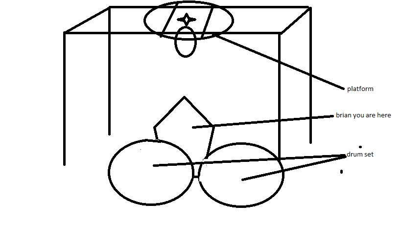 That is why I need to start with a steel or heavy duty tube that come up form the drummer's right side of kit... goes up about 7-8 feet... then turns in a bit above the right side of kit... ( the platform is attached to it ) ....