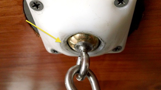Here is a closeup of one of my swivels that I use on a regular basis. The eye screw just barely hits this one and it shows a slight indentation where the eye screw strikes it.