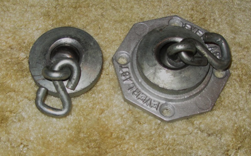 No, I have not "worn out" any swivel to the point of complete failure, but several of my older ones did have substancial wear to the housing where either the eye or the shank hit. some pictures below. The two pics on the left are probably my oldest ballhooks, very active during the 1980's to early 90's in my heaviest hitting days. These both saw hundreds of hours of pretty serious hitting. Especially the single one I'm holding in my hand, which appears in a lot of my early punch drumming video's. That threads on that housing are stripped now, so It will ruin any of my spare bases, of which I have several. Notice on these ballhooks, there is very little visible wear around the eye-bolt where the hook attaches. Later model everlast ballhooks would wear severely in the eye-bolt area, and I think that is wear the "metal flakes" controversy came from. But there is no visible wear on these tanks for the 1970's.