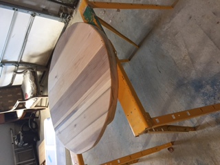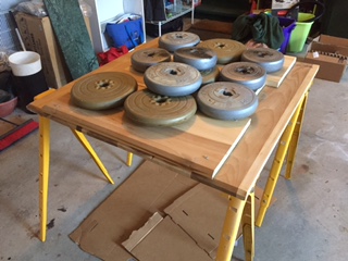 The platform is two layers of 1" wood glued and screwed together. (Three boards on hand.....) I'm guessing total weight is 50-60 lbs.